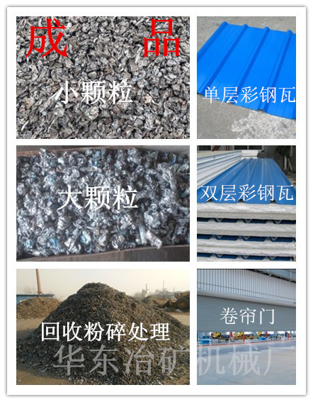 金屬彩鋼瓦破碎粉碎后的物料光亮干凈,便于運(yùn)輸,減少了運(yùn)輸成本,鋼廠煉鋼時(shí)收得率提高,經(jīng)破碎粉碎后的廢金屬材料,銷路很好,利潤(rùn)空間提高,練出的鋼水與投入的廢鋼比例高(產(chǎn)出比高),爐內(nèi)的化學(xué)成分穩(wěn)定、受熱均勻、鋼水重磷、硫含量低、加料密度增加,加料次數(shù)減少,爐內(nèi)耐火材料襯里壽命延長(zhǎng),冶煉時(shí)空氣污染減少、操作容易、耗能降低、利潤(rùn)空間大。